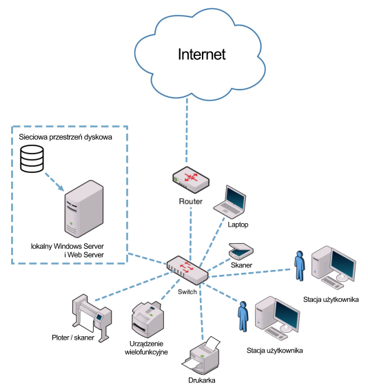 W obu przypadkach zajmujemy się również konfigurowaniem infrastruktury / ruchu sieciowego w zależności od potrzeb projektowych, np. serwer FTP na lokalnym zasobie aby był dostepny spoza sieci lokalnej. Możliwa jest praca in-house w sytuacjach koniecznej fizycznej modyfikacji infrastruktury / zasobów jednak wiele prac odbywa się całkowicie zdalnie przy użyciu narzędzi zdalnego pulpitu lub narzędzi typu AnyDesk lub TeamViewer.